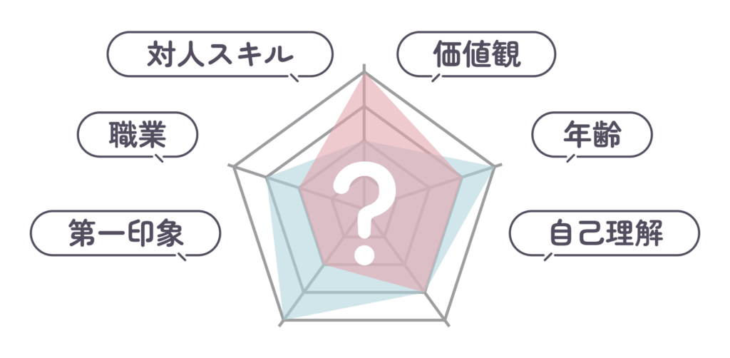 年齢やスペックだけでなく、第一印象・対人スキル・価値観まで6つの要素で数値化して評価します。